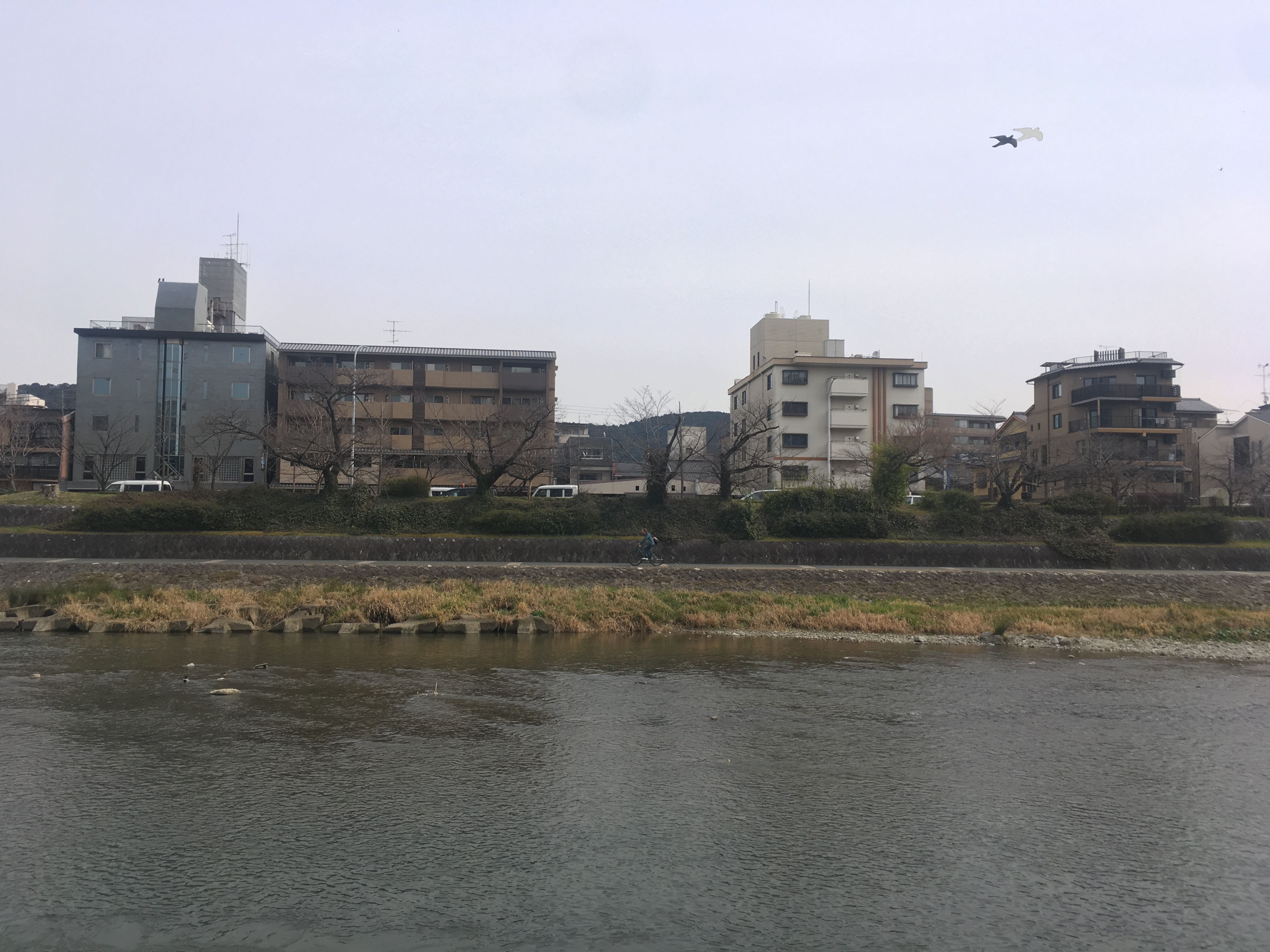 가모 강은 한강보다 강폭이 비교가 안 되게 좁지만 차분하여 압도당하지 않고 달리 알 수 없는 생각들을 떠나보내며 콘크리트 빌딩 속에서 잿빛으로 물든 마음을 회복하게 하는 힘이 있다.
